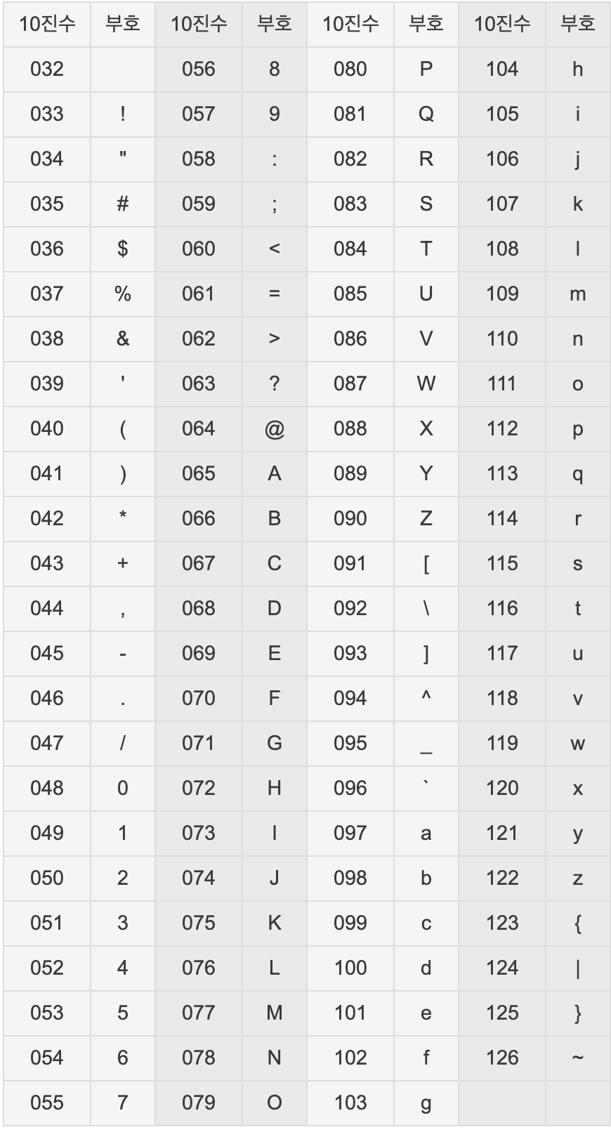 아스키코드 (문자→숫자)